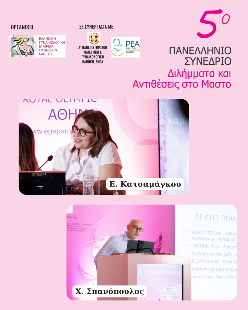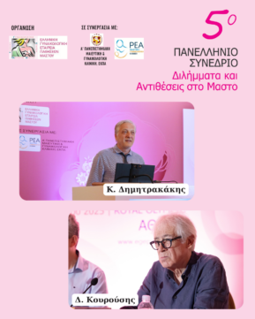 Με μεγάλη επιτυχία πραγματοποιήθηκε το 5ο Πανελλήνιο Συνέδριο με θέμα “Διλήμματα και Αντιθέσεις στο Μαστό”, που διοργανώθηκε από την Ελληνική Γυναικολογική Εταιρεία Παθήσεων Μαστού με Πρόεδρο τον καθ. Κωνσταντίνο Δημητρακάκη, σε συνεργασία με την Κλινική ΡΕΑ και την Α΄Μ/Γ Κλινική ΕΚΠΑ.