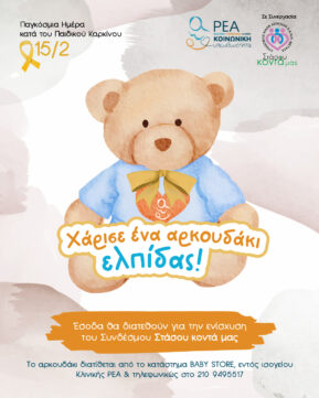 ΧΑΡΙΣΕ ΕΝΑ ΑΡΚΟΥΔΑΚΙ ΕΛΠΙΔΑΣ: ΓΙΑ ΔΕΥΤΕΡΗ ΣΥΝΕΧΟΜΕΝΗ ΧΡΟΝΙΑ Η ΠΡΩΤΟΒΟΥΛΙΑ ΤΗΣ ΚΛΙΝΙΚΗΣ ΡΕΑ ΓΙΑ ΤΗΝ ΠΑΓΚΟΣΜΙΑ ΗΜΕΡΑ ΚΑΤΑ ΤΟΥ ΠΑΙΔΙΚΟΥ ΚΑΡΚΙΝΟΥ (15/2)