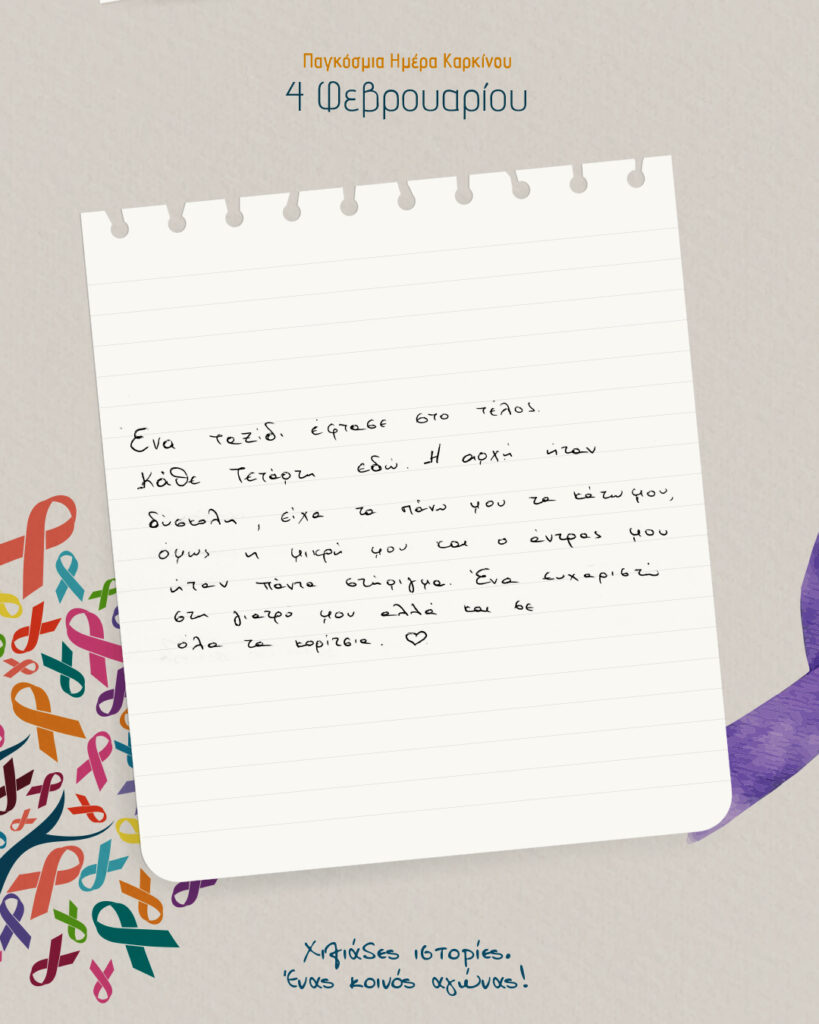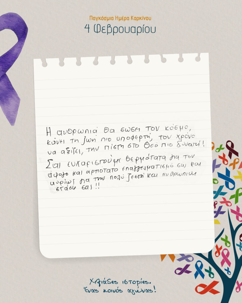ΧΙΛΙΑΔΕΣ ΙΣΤΟΡΙΕΣ. ΕΝΑΣ ΚΟΙΝΟΣ ΑΓΩΝΑΣ! ΠΑΓΚΟΣΜΙΑ ΗΜΕΡΑ ΚΑΡΚΙΝΟΥ 2026