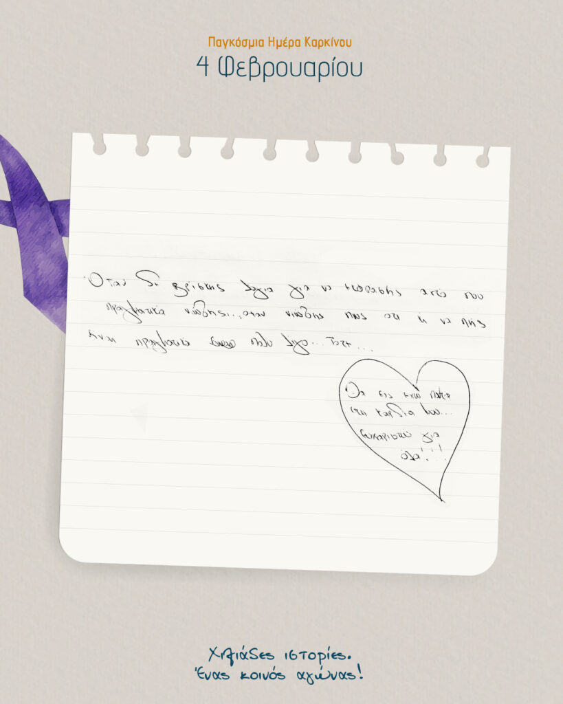 Σήμερα, Παγκόσμια Ημέρα κατά του Καρκίνου (4/2), στεκόμαστε με σεβασμό απέναντι σε κάθε άνθρωπο και σε κάθε μοναδική διαδρομή.