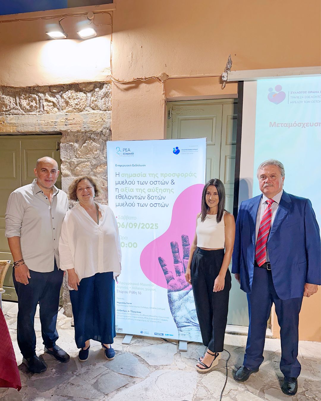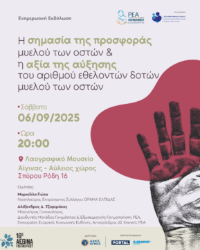 Με επιτυχία ολοκληρώθηκε η ενημερωτική εκδήλωση για τη δωρεά μυελού των οστών, που πραγματοποιήθηκε από την Κλινική ΡΕΑ σε συνεργασία με τον Σύλλογο ΟΡΑΜΑ ΕΛΠΙΔΑΣ, με την υποστήριξη του Δήμου Αίγινας. Η εκδήλωση πραγματοποιήθηκε στο πλαίσιο του Aegina Fistiki Fest 2025, με αφορμή την Παγκόσμια Ημέρα Εθελοντή Δότη Μυελού των Οστών (20/9).