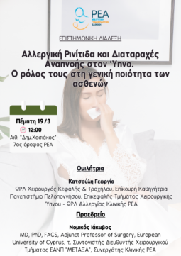 με ομιλήτρια την κα. Κατσούλη Γεωργία, ΩΡΛ Χειρουργός Κεφαλής & Τραχήλου, Επίκουρη Καθηγήτρια Πανεπιστήμιο Πελοποννήσου, Επικεφαλής Τμήματος Χειρουργικής Ύπνου - ΩΡΛ Αλλεργίας Κλινικής ΡΕΑ.