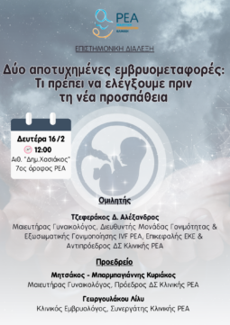 ΕΠΙΣΤΗΜΟΝΙΚΗ ΔΙΑΛΕΞΗ "ΔΥΟ ΑΠΟΤΥΧΗΜΕΝΕΣ ΕΜΒΡΥΟΜΕΤΑΦΟΡΕΣ: ΤΙ ΠΡΕΠΕΙ ΝΑ ΕΛΕΓΞΟΥΜΕ ΠΡΙΝ ΤΗ ΝΕΑ ΠΡΟΣΠΑΘΕΙΑ"