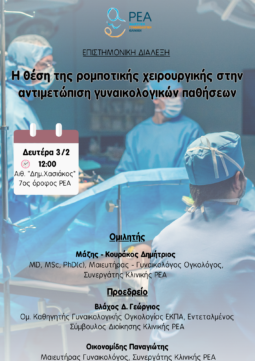 ΕΠΙΣΤΗΜΟΝΙΚΗ ΔΙΑΛΕΞΗ "Η ΘΕΣΗ ΤΗΣ ΡΟΜΠΟΤΙΚΗΣ ΧΕΙΡΟΥΡΓΙΚΗΣ ΣΤΗΝ ΑΝΤΙΜΕΤΩΠΙΣΗ ΓΥΝΑΙΚΟΛΟΓΙΚΩΝ ΠΑΘΗΣΕΩΝ"