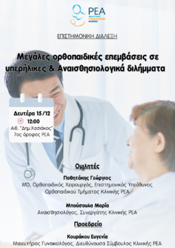 ΕΠΙΣΤΗΜΟΝΙΚΗ ΔΙΑΛΕΞΗ "MΕΓΑΛΕΣ ΟΡΘΟΠΑΙΔΙΚΕΣ ΕΠΕΜΒΑΣΕΙΣ ΣΕ ΥΠΕΡΗΛΙΚΕΣ & AΝΑΙΣΘΗΣΙΟΛΟΓΙΚΑ ΔΙΛΗΜΜΑΤΑ"