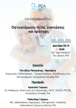 με ομιλητή τον κ. Πεντάζο Παναγιώτη - Νεκτάριο, Χειρουργός Ορθοπαιδικός - Τραυματιολόγος, Εξειδίκευση στην Οστεοπόρωση, Συνεργάτης Κλινικής ΡΕΑ.