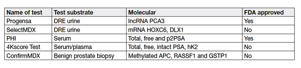Πίνακας 1. Διάφοροι μοριακοί δείκτες που έχουν χρησιμοποιηθεί για τη διάγνωση του καρκίνου του προστάτη. Κανείς εξ’ αυτών δεν έτυχε ευρείας εφαρμογής.