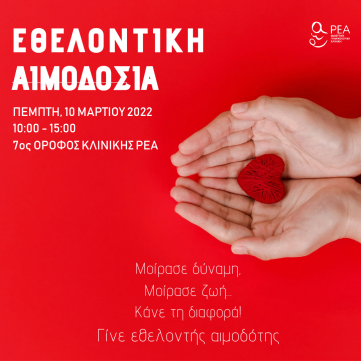 "ΜΟΙΡΑΣΕ ΔΥΝΑΜΗ, ΜΟΙΡΑΣΕ ΖΩΗ" (ΕΘΕΛΟΝΤΙΚΗ ΑΙΜΟΔΟΣΙΑ ΡΕΑ 10-3-2022)